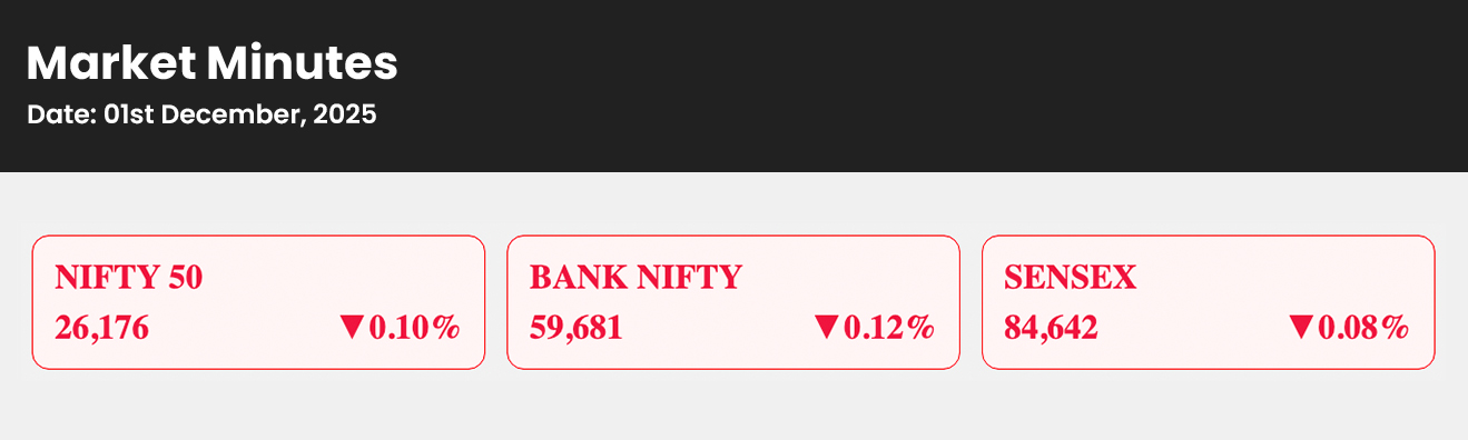 Financials, Private Banks, and Pharma stocks witnessed mild declines, while PSU Banks managed to close largely unchanged.